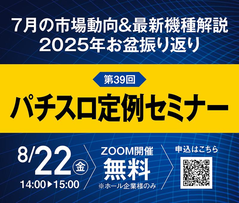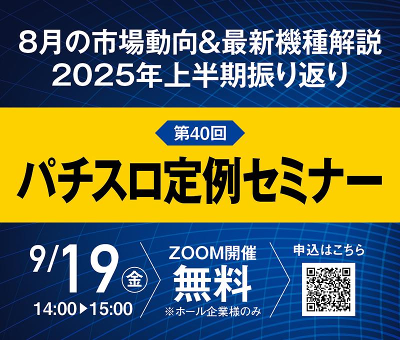 また今後の市況変化と要因を予測し、10月に導入される新機種『スマスロ 新鬼武者3』や『L主役は銭形5』などの最新機種の動向や活用方法なども解説。「SIRIUS」のデータをもとに、ここでしか聞けないパチスロ運用のヒントを得られるセミナー内容となっている。